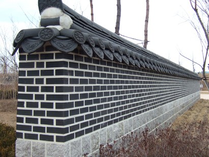 기와를 반장 또는 은장을 이용해 쌓는 방법으로 사이마다 문양을 넣거나 일월 화강석을 박아 단순하면서도 동적이고 안정감있게 만드는 담장입니다. 1M당 50-70 만원
